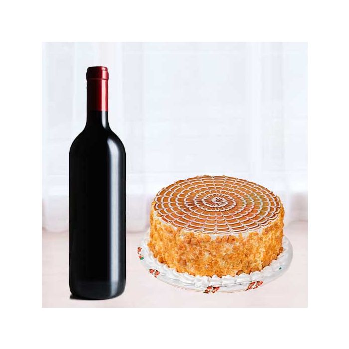1 kg butterscotch cake with bottle of red wine @ 2800