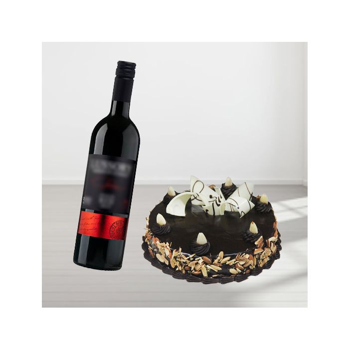 Delicious chocolate almonds cake paired with a bottle of refreshing red wine - the perfect way to show your special someone how much you care! Indulge in this heavenly combination of flavors and textures, and let the world around you melt away. The rich, chocolatey cake is studded with toasted almonds for a delightful crunch in every bite, while the silky frosting brings it all together. This dessert is truly divine, and is sure to impress any lucky recipient. Order your cake today and let us know how much you enjoyed it!
