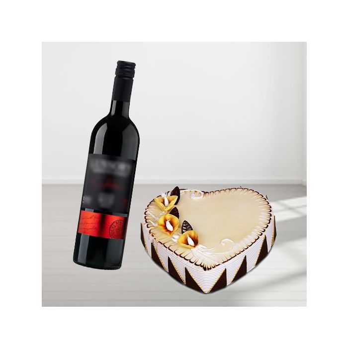 Looking for a unique and romantic gift for that special someone? Look no further than this heart shape butterscotch cake with bottle of red wine. This delicious cake is perfect for any occasion, and the red wine is a perfect complement. Your loved one will be sure to appreciate this thoughtful and delicious gift.