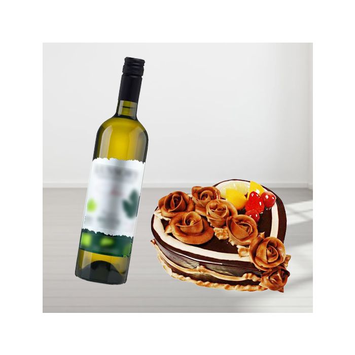 For a truly romantic gesture, look no further than our heart shape chocolate cake with exotic fruits topping and bottle of white wine. The perfect way to show your significant other how much you care, this cake is sure to please with its decadent chocolate flavor and festive fruit topping. Plus, the included bottle of white wine is the perfect pairing for a special occasion. Order now and let that special someone know how much you cares!