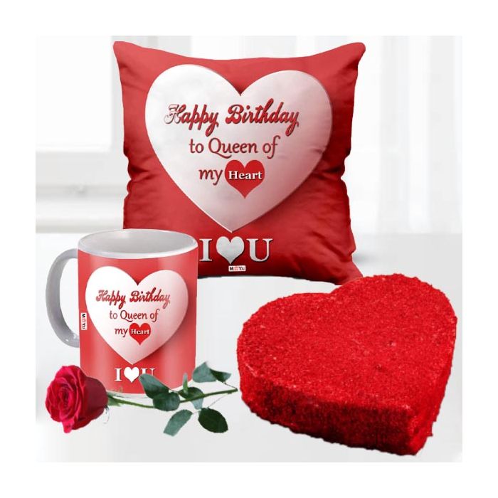1 kg heart shape red velvet cake, photo mug with photo cushion