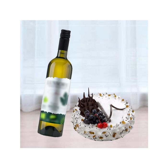 Product Description 5 | Rum n raisin cake with bottle of white wine |