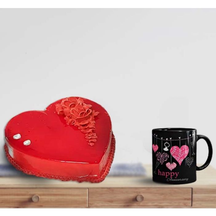 1 kg strawberry heart shape cool cake with photo mug
