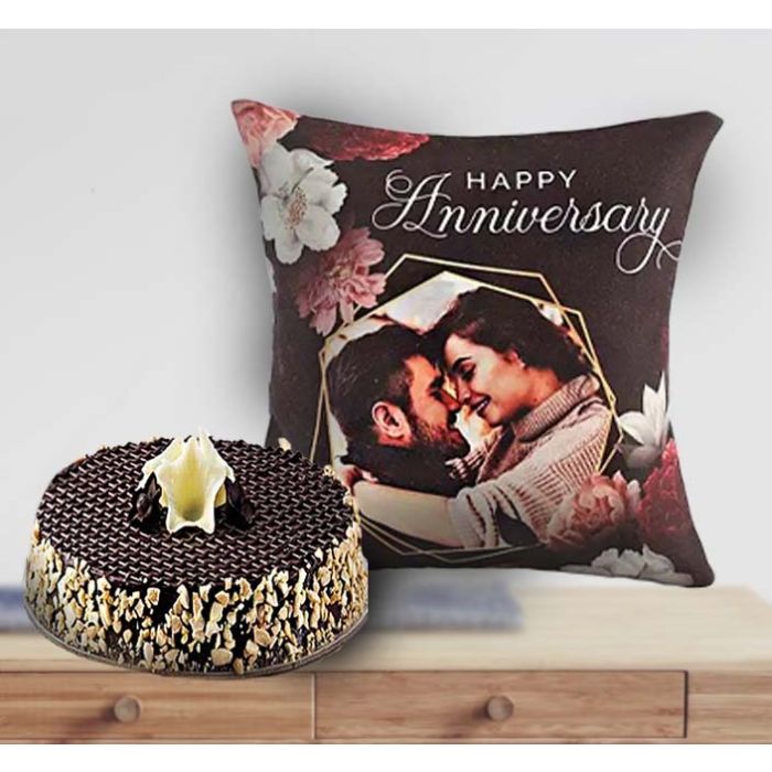 1 pound chocolate almond cake with photo cushion