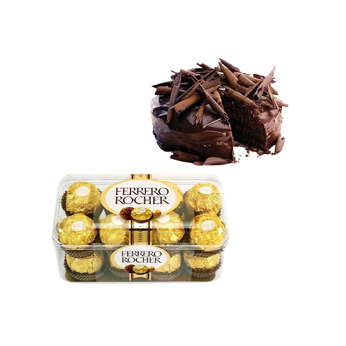 1/2 kg chocolate truffle cake with 16 pcs ferrero rocher chocolates