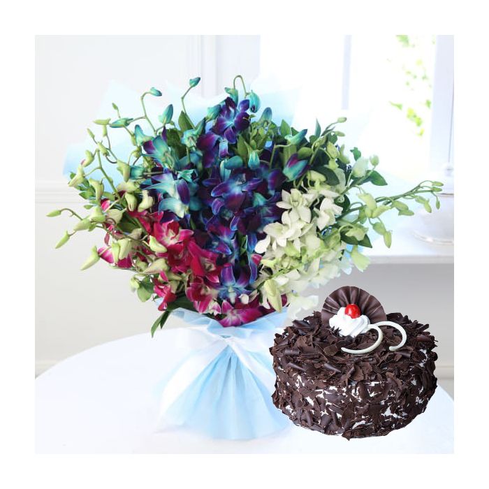 A presentable Gift is something that is loved by everyone. As you have decided to make someone feel very special, make it worth the try. A beautiful Glass vase holds these delicate orchids and is accompanied by a melt-in-mouth Chocolate Pastry.