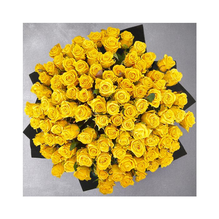 Introducing our 100 yellow roses basket arrangement! This beautiful arrangement is perfect for any occasion, whether you're looking to celebrate a birthday, anniversary, or simply show your loved ones how much you care. Our yellow roses are carefully selected and arranged by our experienced florists, and they come in a stunning basket that is sure to make a lasting impression. With its vibrant colors and luxurious appearance, this arrangement is sure to bring a smile to anyone's face. So don't hesitate, order our 100 yellow roses basket arrangement today and let your loved ones know how much you care!