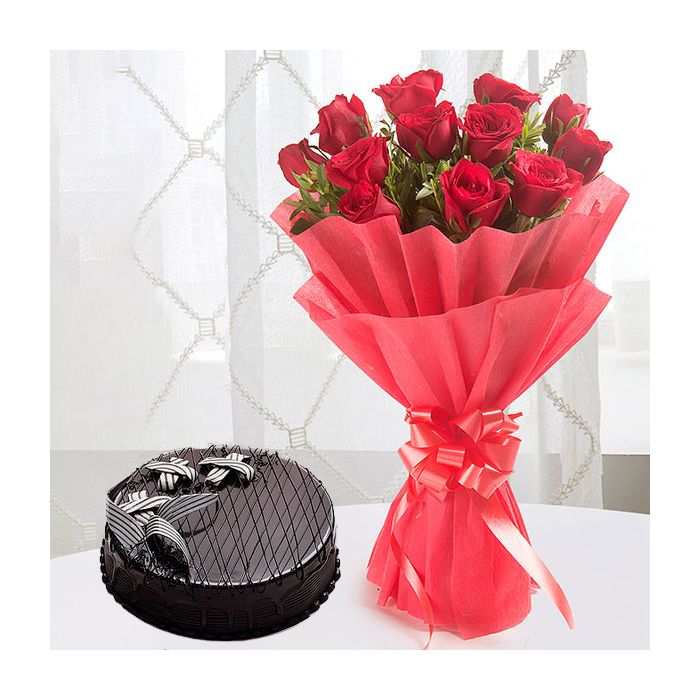Looking for a romantic gift that will really make an impression? Look no further than our 12 red roses with 1 pound chocolate fantasy cake! This stunning arrangement features a dozen beautiful red roses expertly arranged with a mouthwatering chocolate fantasy cake. The perfect way to show your love, this gift is sure to please anyone special in your life.