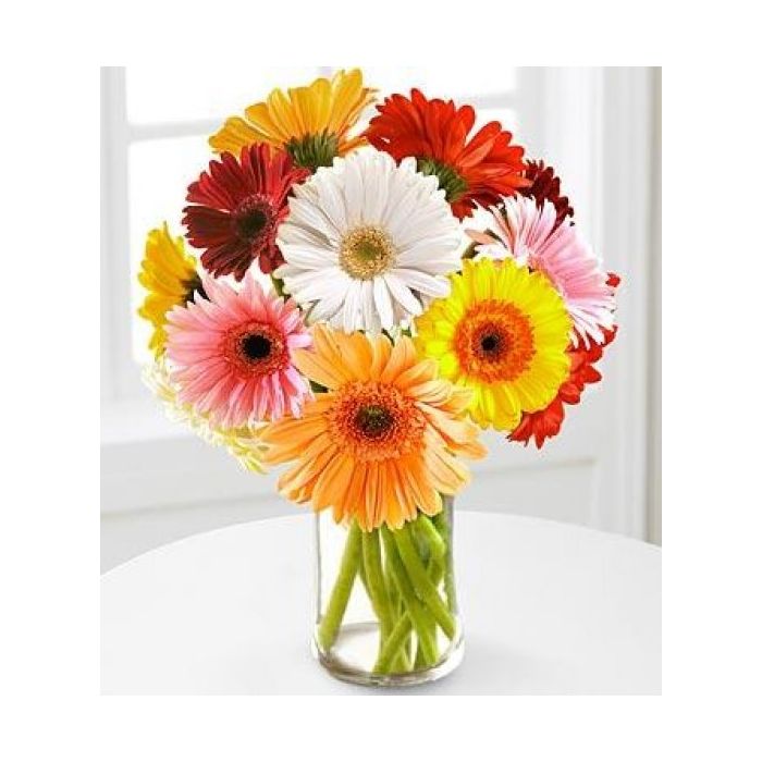 Arranged in a stylish glass vase, these flowers are the perfect way to show your loved ones how much you care. Whether you're sending them as a gift or treating yourself, our 15 mix Gerberas are guaranteed to brighten up any home or office. So why not add a touch of beauty to your day with our stunning 15 mix Gerberas in glass vase?