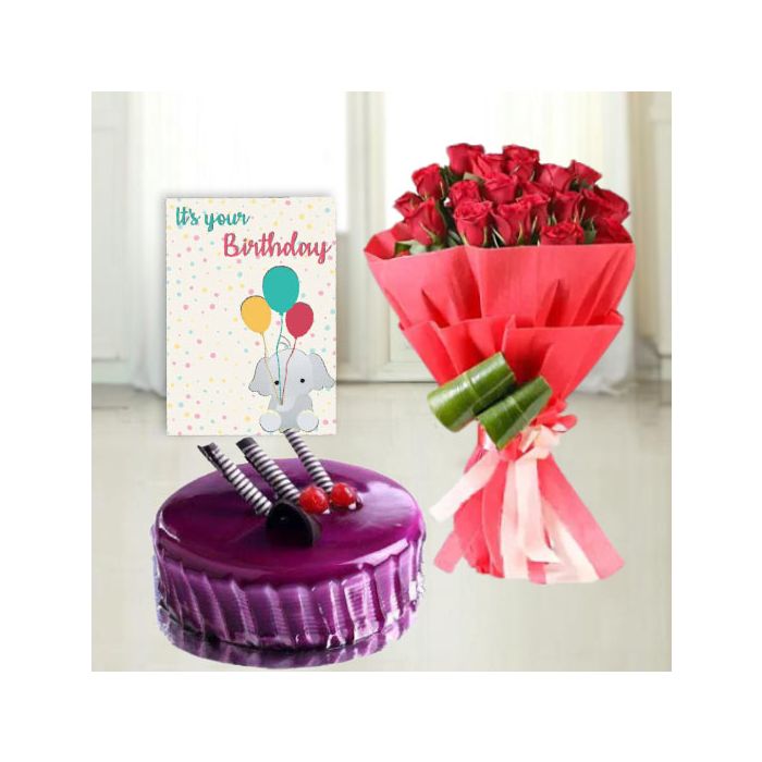 Looking for the perfect way to show your loved one how much you care? Look no further than our 20 red roses bunch, black currant cool cake, and birthday greeting card. Our red roses are the perfect way to say "I love you," while our black currant cake is a delicious and unique way to show your affection. Plus, our birthday greeting card is the perfect finishing touch to any gift. Order now and make this birthday one to remember!