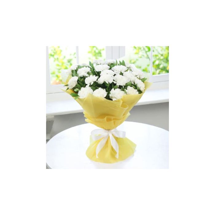 Looking for a romantic way to say "I love you"? Look no further than our beautiful 20 white carnations bunch! This stunning arrangement of pristine white carnations is the perfect way to show your special someone how much you care. Whether you're celebrating an anniversary, a birthday, or just wanting to show your affection, this gorgeous bunch is sure to impress. Each carnation is lovingly grown and hand-picked to ensure only the finest quality for our customers. The flowers are then expertly arranged by our skilled florists, ensuring that each bouquet is picture-perfect. Our 20 white carnations bunch is the perfect way to show your loved one how much they mean to you.