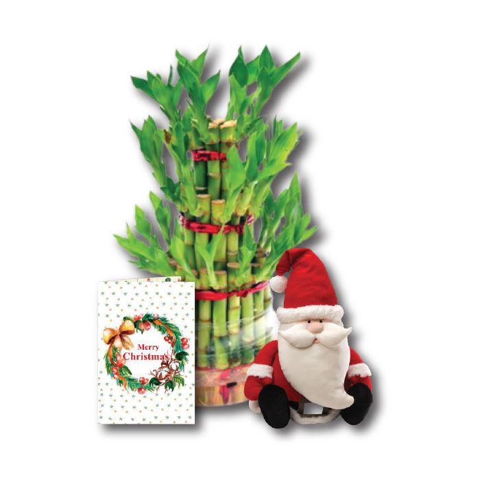 3 Layer Lucky Bamboo Tree With Christmas Greeting Card And Santa Clause Toy