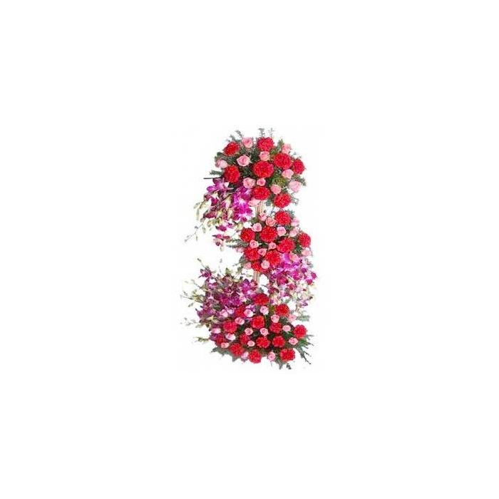 4 feet height exotic arrangement of lilies orchids ,roses and carnations