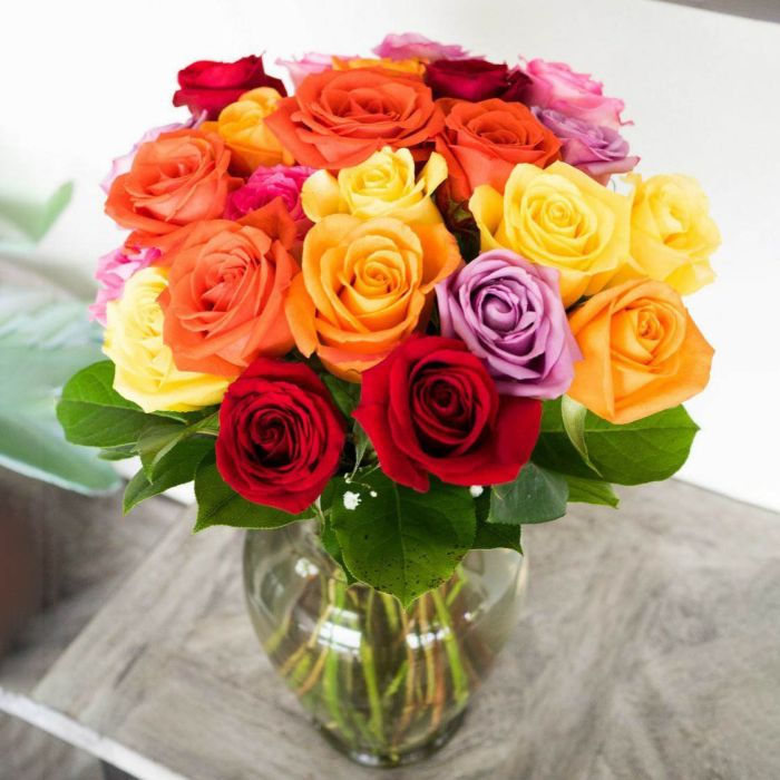 Looking for a romantic gesture that will really impress your loved one? Look no further than our stunning 50 Mix Colour Roses in Glass Vase. This extravagant display of beautiful blooms is sure to sweep them off their feet.The roses are expertly arranged in a tall glass vase, adding an extra touch of elegance. The mix of colours makes this arrangement even more special, as each rose represents a different emotion. From the deep reds symbolising love and passion, to the softer pinks representing admiration and joy, each flower has its own meaning.This luxurious arrangement is the perfect way to say 'I love you', 'Happy Anniversary' or simply 'Thinking of you'. No matter what the occasion, our