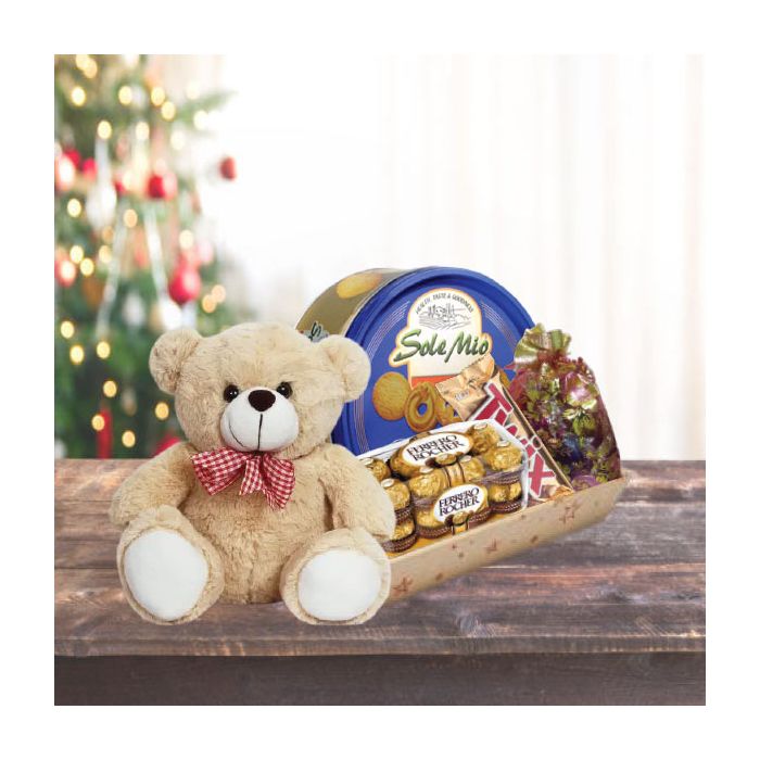 A Nice Hamper Of Cookies , Assorted Chocolate Box ,16 pcs Ferrero Rocher Chocolates, Twix Cadbury And A Cute Teddy