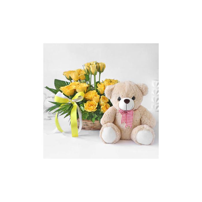 Yellow is the color of friendship and to make it stronger and more lovable, gift this beautiful combination of stunning yellow flowers and a lovely teddy. A charming way to express your feelings!