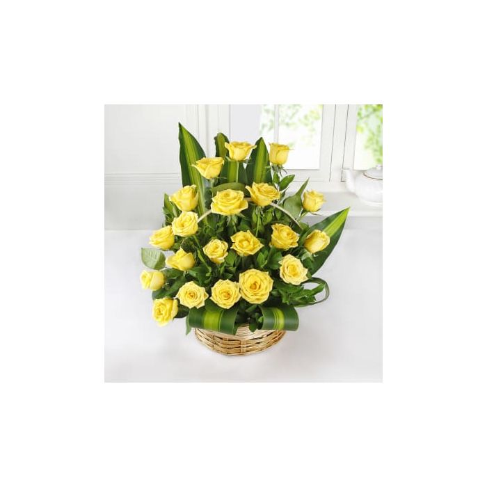Looking for the perfect way to show your loved ones how much you care? Look no further than our stunning basket of 50 yellow roses. This beautiful arrangement is sure to brighten up any room, and the recipient is sure to be touched by your thoughtfulness.The delicate yellow roses are gorgeously offset by the lush green foliage, and the overall effect is simply stunning. The basket itself is also a work of art, with its intricate weave and lovely handles.Whether you're looking to say 'thank you', 'I'm sorry', or simply 'I love you', this basket of yellow roses is sure to do the trick. Order now and we'll have it delivered straight to your door, fresh and beautiful.