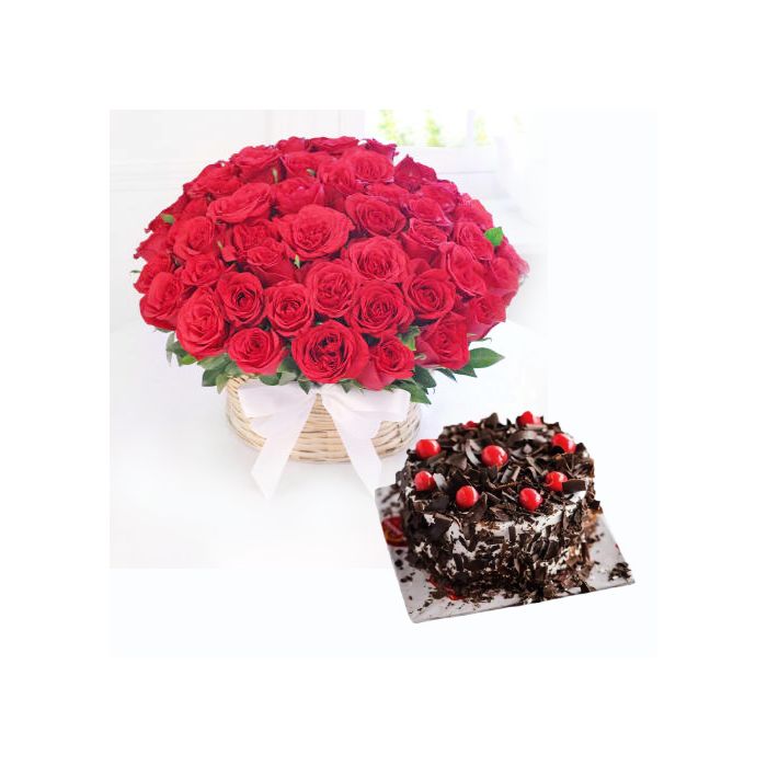 Product Description 1 | Basket of 15 Red Roses with 1 Pound Chocolate Fantasy Cake |