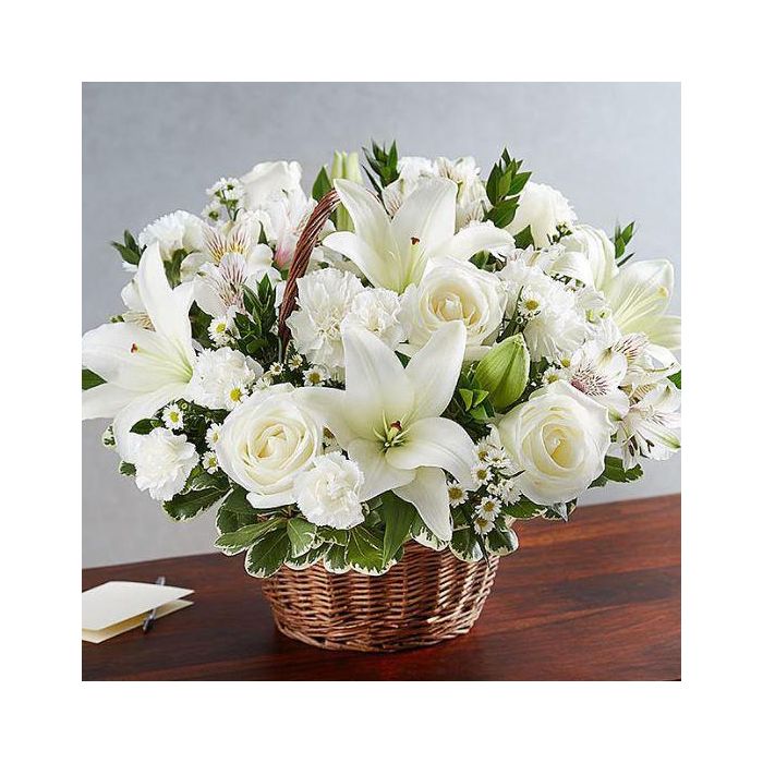 Looking for a stunning gift that will make anyone swoon? Look no further than our basket of 20 white mix flowers! This beautiful arrangement is perfect for any occasion, and is sure to make a lasting impression.The delicate blooms are expertly arranged in a woven basket, and make a truly eye-catching display. Whether you're looking to send your congratulations, show your appreciation, or simply say "I love you," this gift is sure to make a big impact.