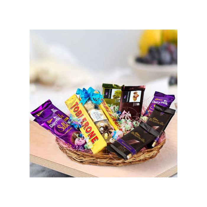 Who doesn't love chocolate? Especially when it's given to you in a basket full of deliciousness! Our Basket Of Assorted Chocolates is perfect for anyone with a sweet tooth. Each chocolate is hand-selected and placed in the basket with care, making it a gift that is sure to please.Whether you're looking for a birthday present, an anniversary gift, or just a way to show someone you care, this basket is perfect. It's also great for office parties, holiday gatherings, or anytime you need to indulge your sweet side. So go ahead and treat yourself, or someone else, to a basket full of deliciousness today!