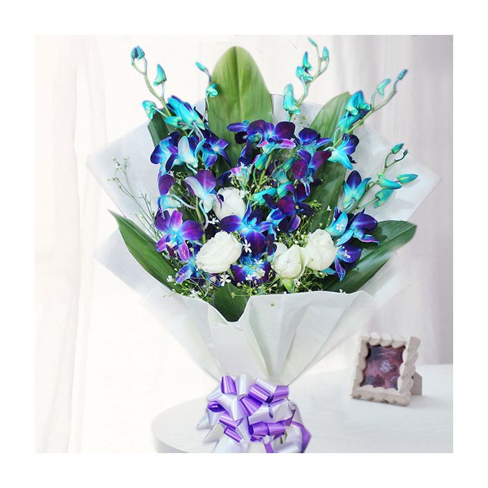 Blue Orchids and white carnations Arrangement