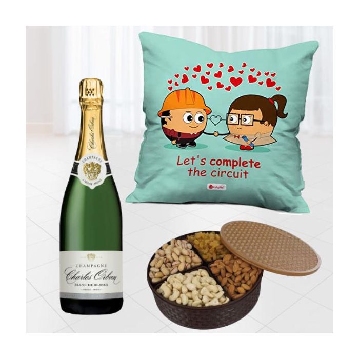 Looking for the perfect gift for your loved ones? Look no further than this delicious box of half kg assorted dry fruits! This tasty treat is sure to please, and it comes with a bottle of champagne for an extra special touch. Plus, the photo cushion is a thoughtful way to show your loved ones how much you care.
