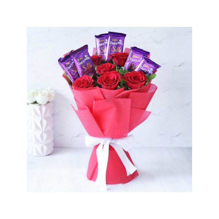 Introducing the Bunch of 12 red Roses with 3 pcs of Assorted dairy milk! This beautiful bouquet is the perfect way to show your special someone how much you care. The dozen red roses are a symbol of love and passion, while the three pieces of assorted Dairy Milk chocolate are a delicious treat that is sure to please. Whether you are looking for a romantic gesture or a thoughtful gift, this is the perfect choice. Order now and let that special someone know how much they mean to you.