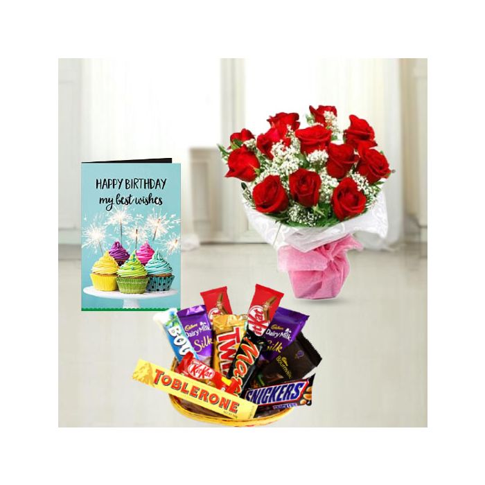 Looking for the perfect gift to show your loved one how much you care? Look no further than this gorgeous bunch of 15 red roses, basket of premium assorted chocolates, and birthday greeting card. Whether it's your mom's birthday, your girlfriend's birthday, or your best friend's birthday, this is a gift that is sure to delight and make them feel loved. The red roses are incredibly romantic and signify love and passion, while the delicious chocolates are a sweet treat that everyone will enjoy. The birthday greeting card is the perfect finishing touch to this thoughtful and special gift. So go ahead and celebrate those special people in your life with this incredible present.