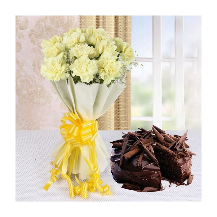 Guess it’s a perfect day to surprise the one you love! Be it a special friend, family member or your beloved, these beautiful 15 yellow carnations and chocolate cake will create sweet memories!
