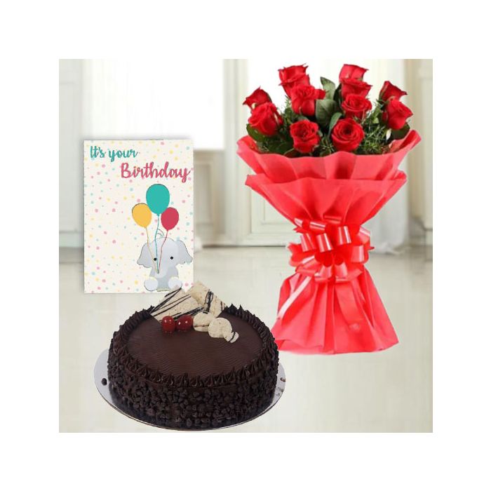 What could be a more romantic way to show your affection than with a beautiful bunch of red roses? Add in a delicious chocolate cake covered in choco chips, and you have the perfect birthday gift for your loved one. Make it extra special by adding a heartfelt birthday greeting card.