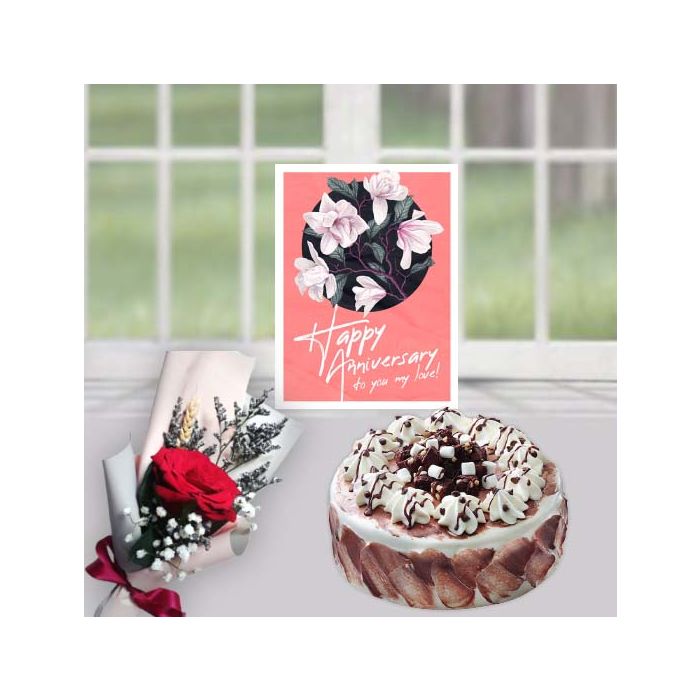 Your anniversary is a special day to celebrate your love and commitment to each other. And what better way to do that than with a delicious chocolate cake? Our half kg choco chips cake is perfect for sharing with your loved one. It's made with rich chocolate chips and covered in a creamy chocolate frosting. And it comes with a single red rose and an anniversary card. So make this anniversary one to remember with our special Anniversary Cake.