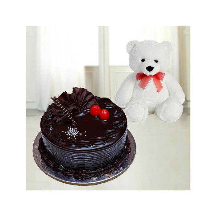 chocolate fantasy cake with 1 feet height teddy bear