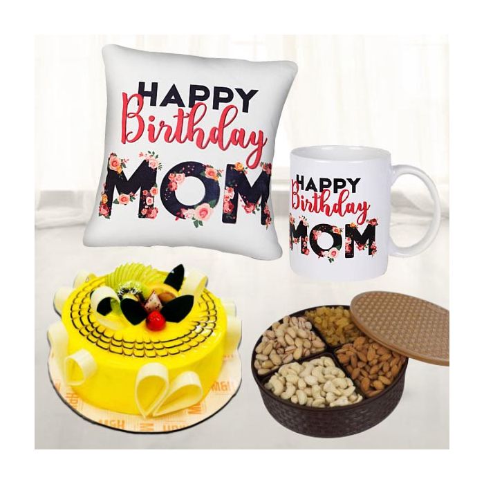 Welcome to our delicious world of Half kg Premium quality pineapple cool cake , Box of half kg assorted dry fruits!This wonderful product includes a half kg premium quality pineapple cool cake , box of half kg assorted dry fruits, with photo mug and photo cushion. It's the perfect way to enjoy your favorite treats while celebrating any special occasion!Our Half kg Premium quality pineapple cool cake is moist, flavorful, and covered in a sweet pineapple glaze. It's a beautifully rich cake that is perfect for any celebration! The Assorted Dry Fruits box includes a variety of tasty fruits that are perfect for snacking or adding to your favorite recipes. This box makes a great gift for any fruit lover in your life!The