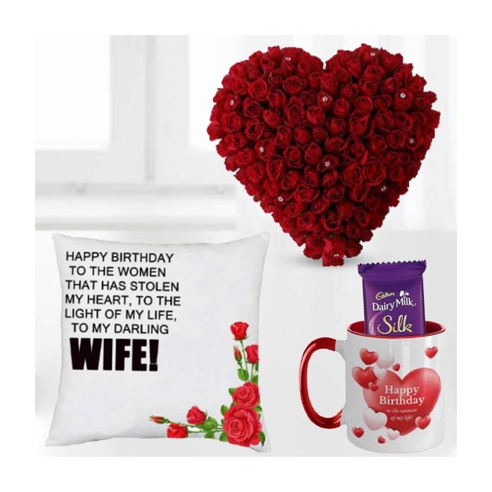 Looking for the perfect way to say "I Love You"? Look no further than our Heart Shape Arrangement of 50 Red Roses. This stunning arrangement is expertly crafted by our florists using only the freshest, most beautiful red roses. The heart shape is the perfect symbol of your love and affection, making this arrangement the perfect gift for your special someone.This stunning arrangement is not only beautiful, but it's also practical. The photo mug with 2 Dairy Milk Silk chocolates and a photo cushion are sure to please any sweet tooth. And the mug makes a great keepsake for years to come. So don't wait, order our Heart Shape Arrangement of 50 Red Roses today!