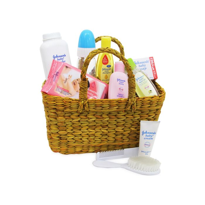 Exclusive Basket of Johnson Baby Gift Hamper.Beautiful Collection of Johnson Baby shampoo, Oil, Soap, Powder, Lotion, Comb, wet wipe and cream.