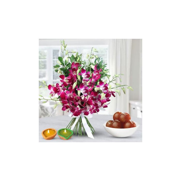 Exotic Bouquet of Orchids with 1 kg gulab jamun
