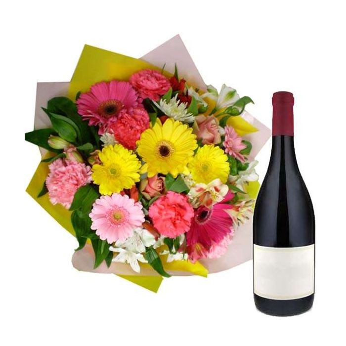 Love Celebration..Bottle Of champegne with Bouquet of mix flowers ..a good choice to celebrate