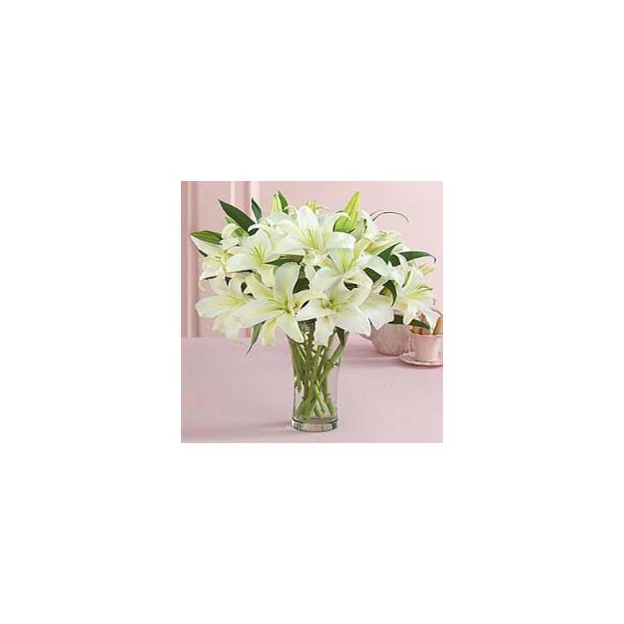 Vase arrangement of 10 white lilies